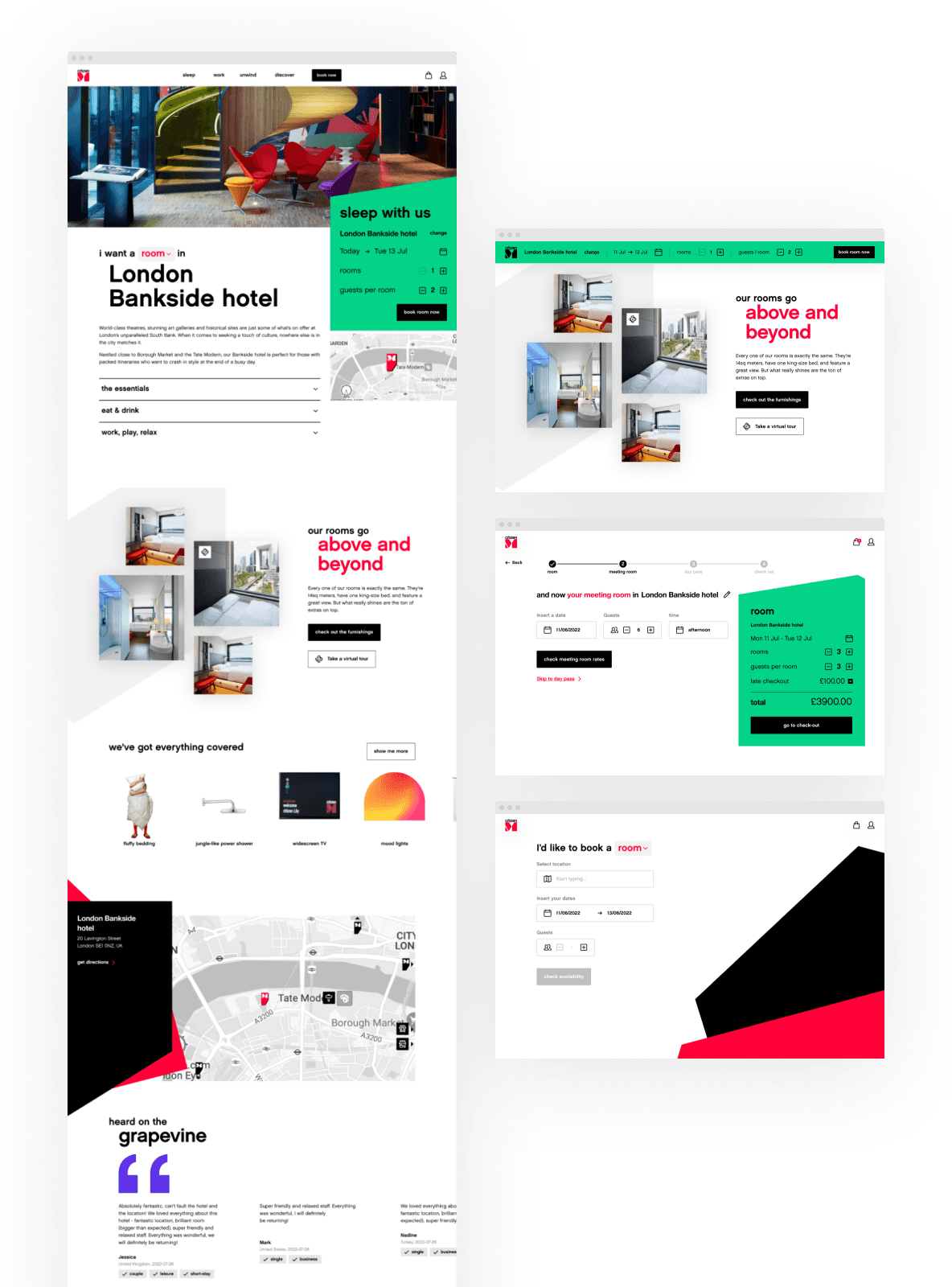 The new look-and-feel needed to feel as exciting and considered as the physical experience of the hotels, across a range of digital channels: web, native app, tablet, kiosk and watch.